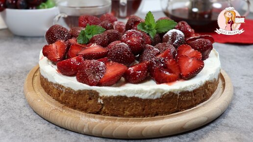 Летнее наслаждение: пирог "Клубника со сливками". Рассказываю: рассыпчатое песочное тесто, свежая клубника и...