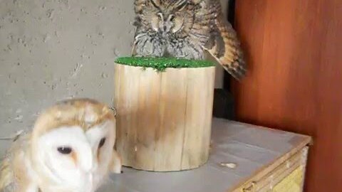 Ушастая сова и сипуха защитная реакция 3 ч. - Long-eared owl and Barn owl defensive reaction part 3