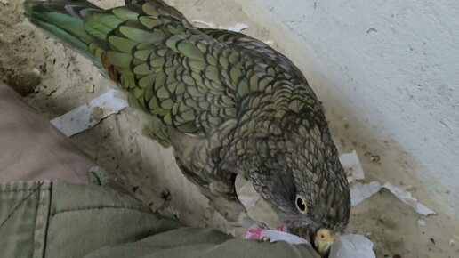 Кеа разбирает человека, пока тот рассуждает о разуме птиц