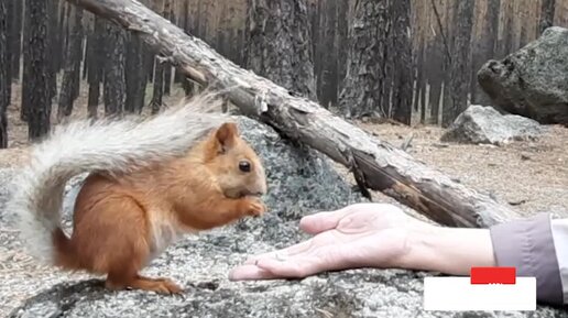 Белка из моих рук грызет семечки в Санаторий "Щучинский." Боровое.