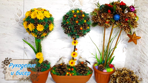 Топиарии из шишек. Из какого материала делаю основу и стволы. Идеи.