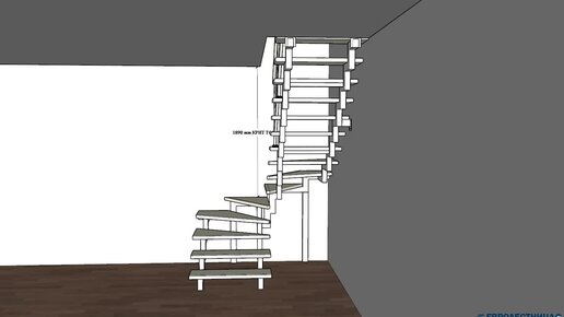 Проект визуализации для заказчика из города Пермь! Лестница П-образная с забежными ступенями!