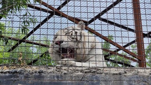Тигр Раджа на своем наблюдательном пункте демонстрирует всем посторонним свое превосходное оружие - огромные клыки