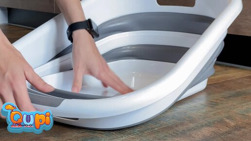 Таз 24 литра бренда Qupi. Раскладной таз силиконовый с пластиковыми элементами жесткости.