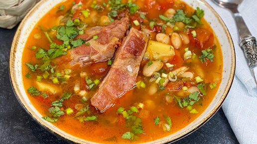 Суп на копченых ребрах с белой фасолью. Расскажу как фасоль из музыкальной сделать нейтральной🙄😃и чтобы она сохраняла форму