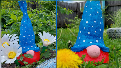 Из старой кофты, бутылок и цемента получился интересный садовый гном