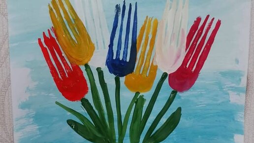 Тюльпаны в вазе, креативное рисование гуашью и вилкой