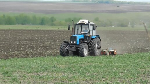 Трактор МТЗ-1221 на культивации. Russian tractor МТZ-1221 works in the field