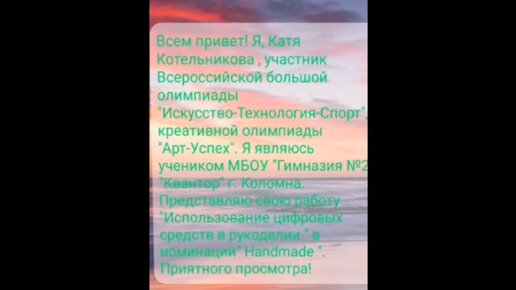 Индивидуальное задание регионального этапа креативной олимпиады "Арт-успех", Котельникова Екатерина, номинация "Handmadе"