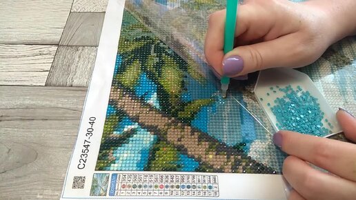 ПЛЯЖ, ЛОДКА, ПАЛЬМЫ! #3 Процесс выкладки страз. Алмазная мозаика