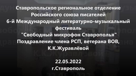 Клара Кирилловна Журавлёва - член РСП , Фестиваль - Свободный микрофон Ставрополья 22.05.2022 Став.РО РСП