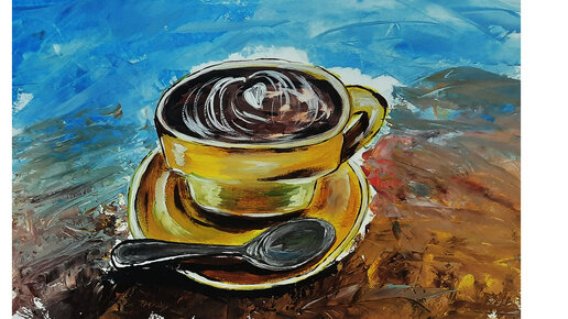 Как нарисовать натюрморт гуашью. Рисуем чашку кофе. Натюрморт гуашью.