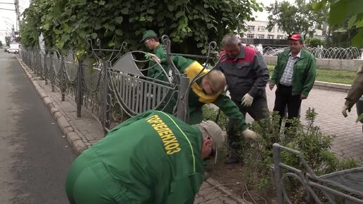 В Первомайском сквере убирают металлические ограждения