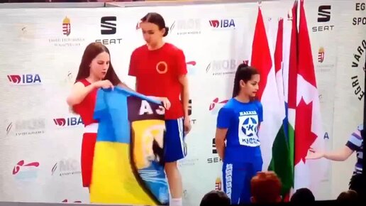 В украинских СМИ расходится видео, на котором спортсменка развернула флаг нацбатальона «Азов» запрещен в РФ во время церемонии награждения.