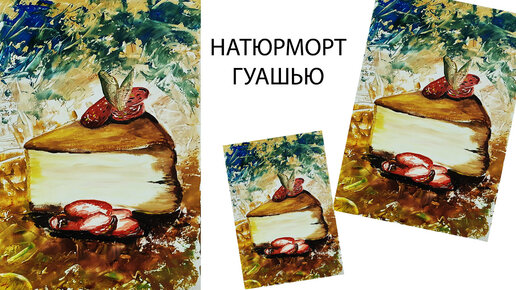 Как нарисовать натюрморт. Рисуем кусок торта. Торт с ягодами клубники.