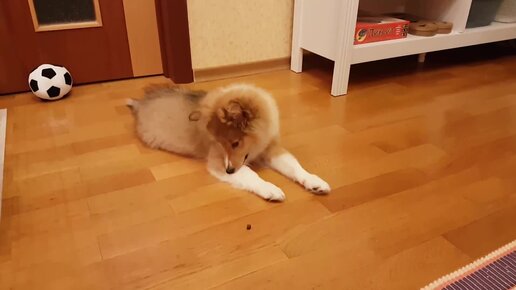 Щенок шелти борется с желанием съесть кусок | Смешная озвучка