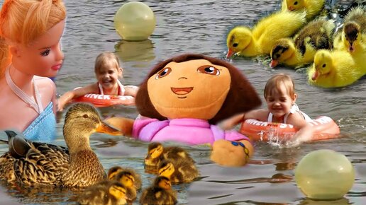 Пикник с палаткой на берегу Купаемся в озере с УТЯТАМИ Играем в мяч Кукла Барби Даша Путешественница