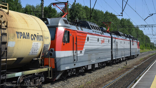 Новый электровоз 3ЭС4К-064 в Питерском лесу