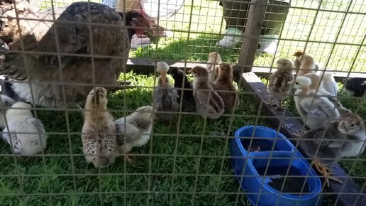 Курица и цыплята из инкубатора