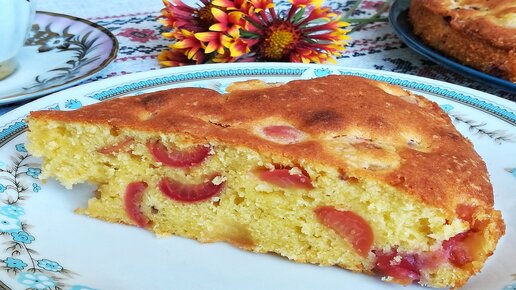 Простой пирог с черешней. Прост в приготовлении, а получается очень вкусным, сочным и ароматным.