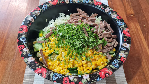 Салат с пекинской капустой. Мясо делает этот салат еще и сытным. Легкий салат на лето.
