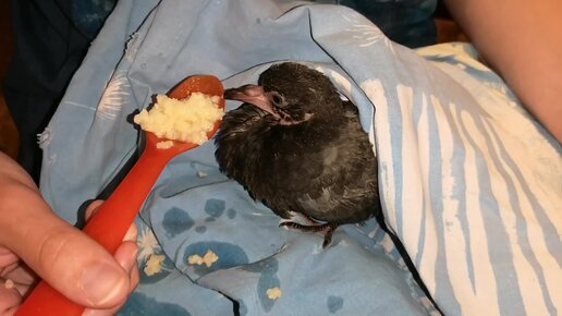 Кормим Птенца Голубя в доме))) 2-й ЭТАП)