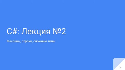 Язык программирования С# №2 Массивы, строки, сложные типы