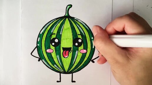 Как нарисовать милый арбуз 🍉 Простой рисунок шаг за шагом #какнарисовать #арбуз #поэтапноерисование