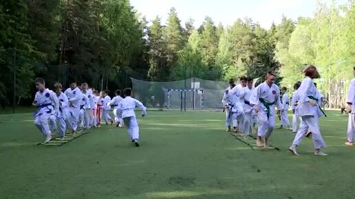 Тренировка каратистов на летних сборах. Момент 3.