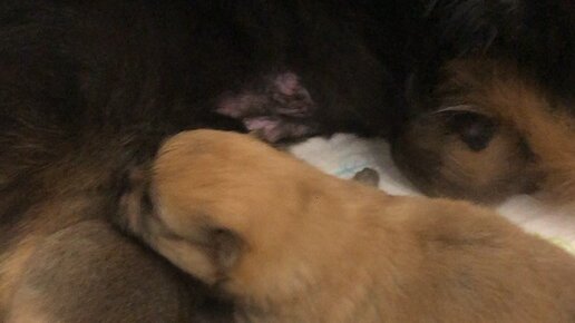 Щенки 🐶 малыши наелись🍼и спят рядом с мамой