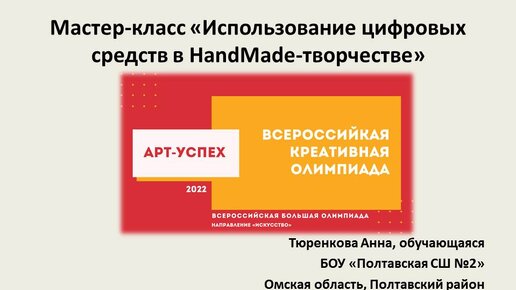 Мастер-класс «Использование цифровых средств в HandMade-творчестве», Тюренкова Анна, БОУ "Полтавская СШ №2"