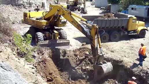 Строительство развязки у вокзала. Экскаватор Атек-881 в работе. Севастополь 2011