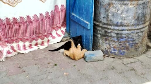 Котики балуются во дворе, играются со шторой! С интересом понаблюдал, за котиками балбесами!