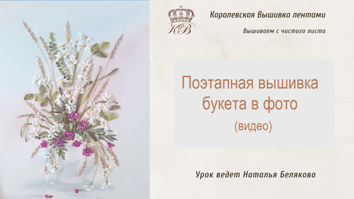 Поэтапная вышивка лентами букета полевых цветов.