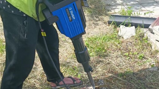 Электрический отбойный молоток ЗУБР ЗМ-40-1700, демонтаж бетона на участке.