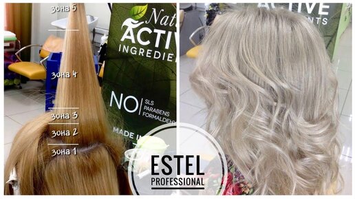Окрашивание БЛОНД // Светло русый пепельный 8.0 + 8.1 из желтого цвета. Эстель / Estel Professional Обесцвечивание волос Estel Couture