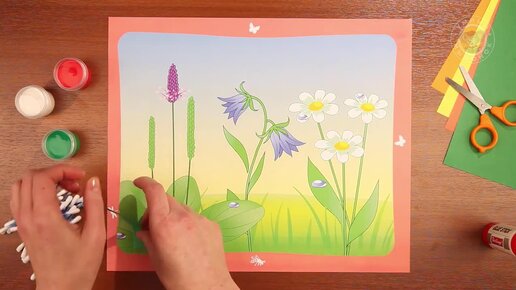 Летнее творческое задание для детей 5-6 лет "Утренняя роса". Клеим аппликации