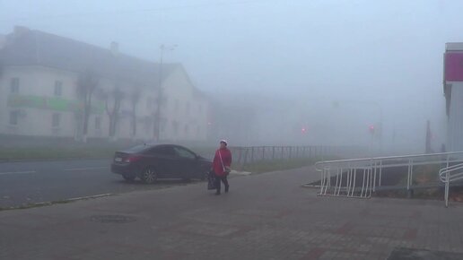 Сланцы. Улица Кирова в тумане. 14.10.2021