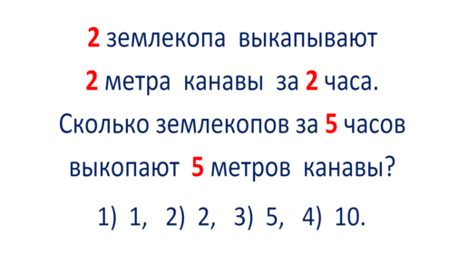 2 землекопа копают 2 метра канавы за 2 часа. Сколько землекопов за 5 часов выкопают 5 метров канавы?