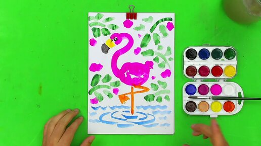 Как нарисовать Фламинго красками - уроки рисования для детей