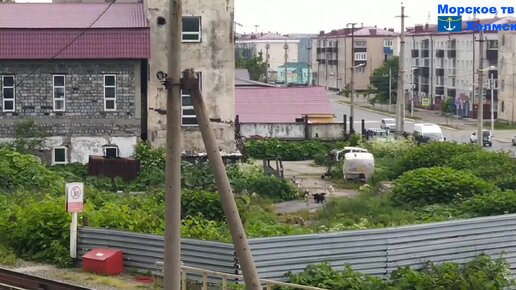 Стая собак возле бывшего пивзавода на ул. Советской города Холмск