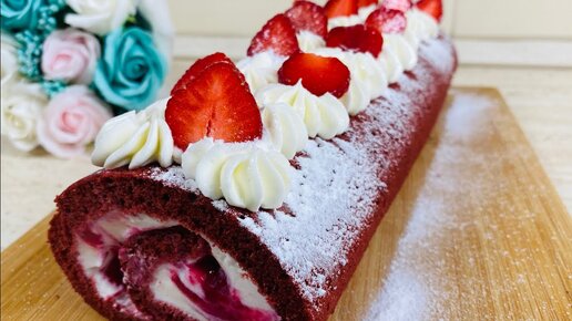 Рулет Красный бархат .Нежный и вкусный с клубничным конфи