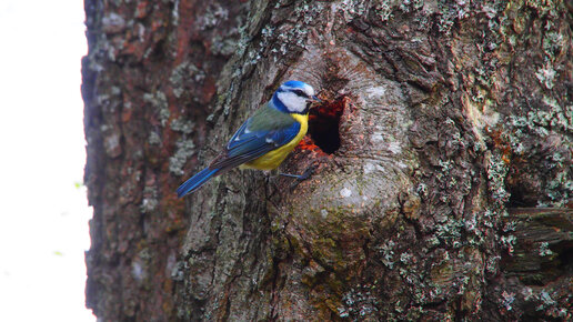 Капельки красоты: гнёздышко синичек лазоревок в дупле
