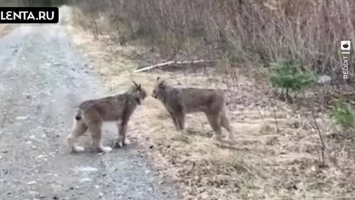 Уважающие себя рыси решают проблемы разговором, а не лапами. Вот так, например, происходит схватка за территорию
