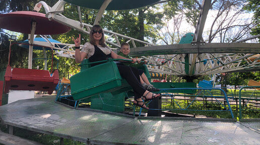 Вспоминаю детство - катаюсь на стареньком аттракционе «Орбита» с сыном