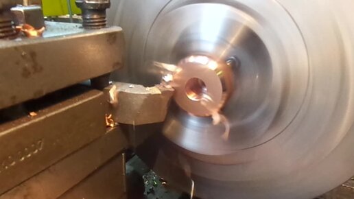 Обработка меди на токарном станке.