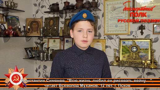 Константин Симонов, "Всю жизнь любил он рисовать войну…". Читает Всеволод Муханов, 12 лет, Псков