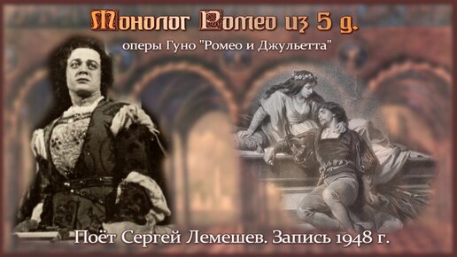Сергей Лемешев. МОНОЛОГ РОМЕО из 5 д. оперы Гуно "Ромео и Джульетта"/ запись 1948 г.