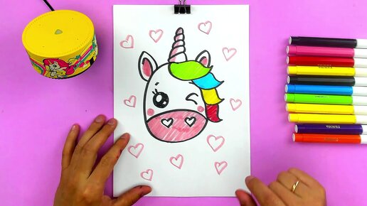 рисуем ЕДИНОРОГА голову с радугой и Алисой