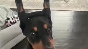 Зачем доберману заматывают уши #доберман #купированиеушей